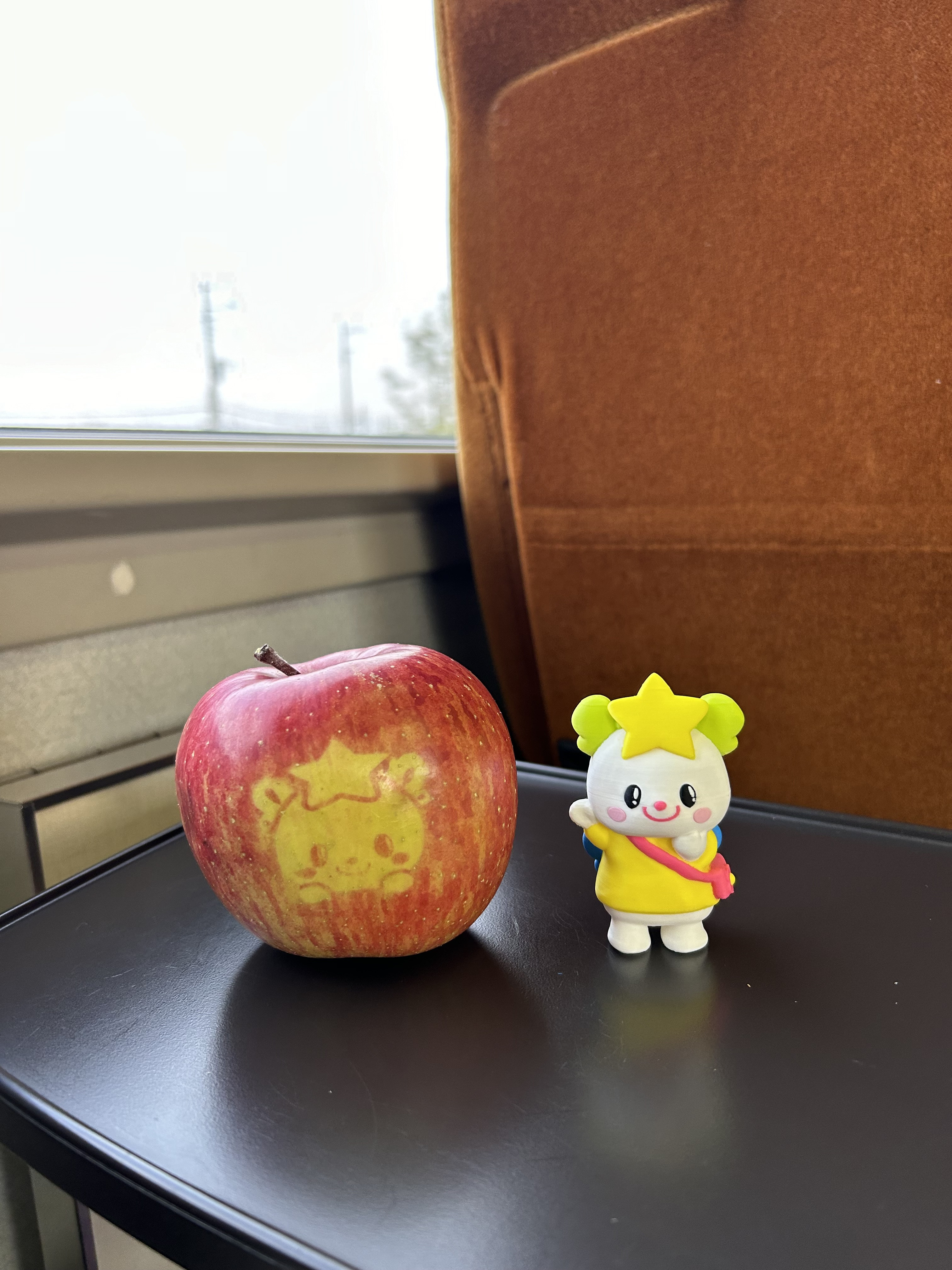 お土産にはゆめちゃん型に掘ったりんごとゆめちゃんフィギュアを買いました✌️✨️